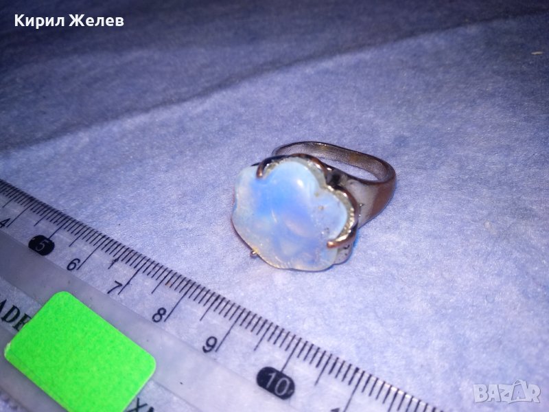 СТАР СКЪПОЦЕНЕН ВИНТИДЖ АРТ ПРЪСТЕН с КРАСИВО ШЛИФОВАН СИН ЛУНЕН КРИСТАЛ 36958
