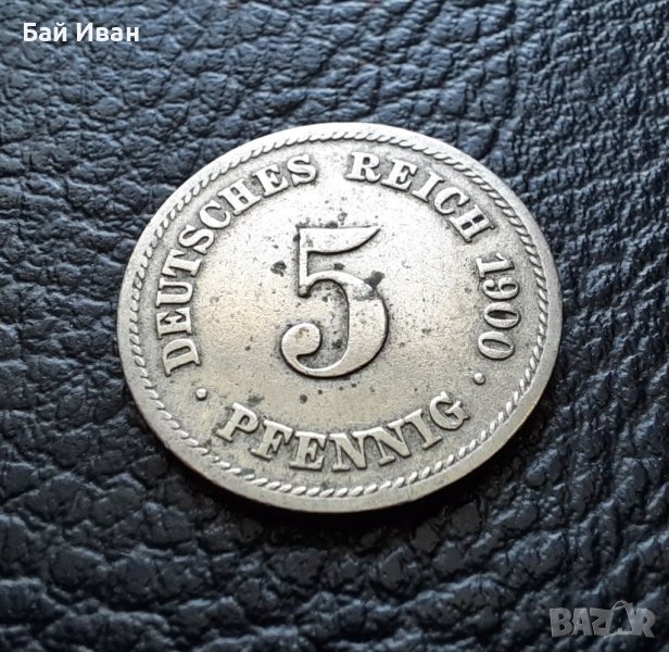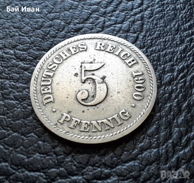 Стара монета 5 пфенига 1900 г. буква F - Германия- рядка ,125 годишна ! → Обява 39724270