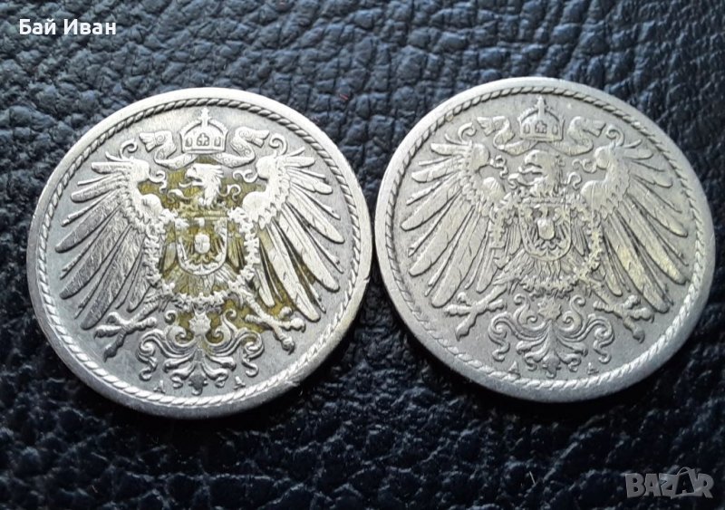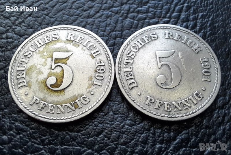 Стара монета 5 пфенига 1901 г. буква А , 2 броя - Германия- хит цена ! → Обява 39724375
