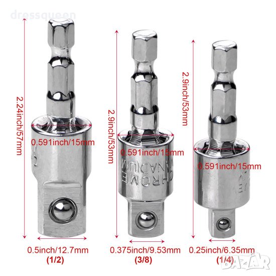 3броя адаптори за вложки 1/2 ; 1/4 ; 3/8