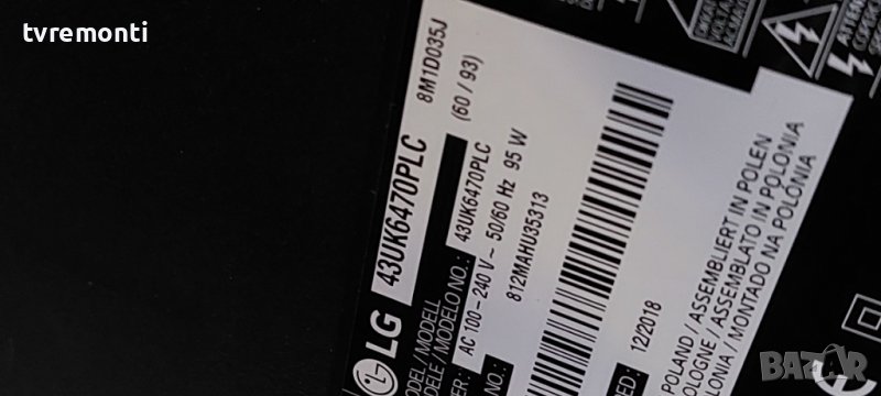 MAIN BOARD ,EAX67872805(1.1) , for ,LG 43UK6470PLC дисплей HC430DGG-SLTL5-9111 Борда е гарантирано работещ Демонтиран от телевизор LG модел 43UK6470PLC със счупен дисплей HC430DGG-SLTL5-9111 тествана от нашия техник тествана от нашия техник