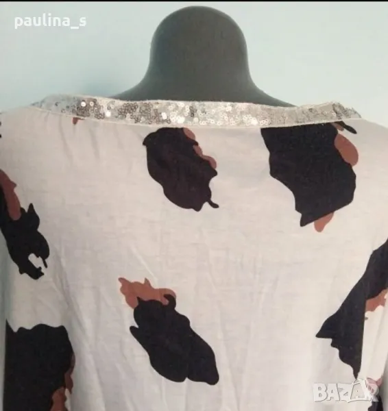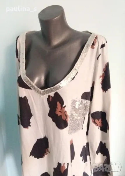 2️⃣. Колаж / 2XL / 4XL - Туника с декорации "Sheilay" / много голям размер. Цената е крайна 19,99лв / 10 евро. Много ефектна туника с декорации от пайети в животински принт. Материята е памук и примеси, доста еластична и покрива няколко размера. Една бройка, без дефекти и етикет.