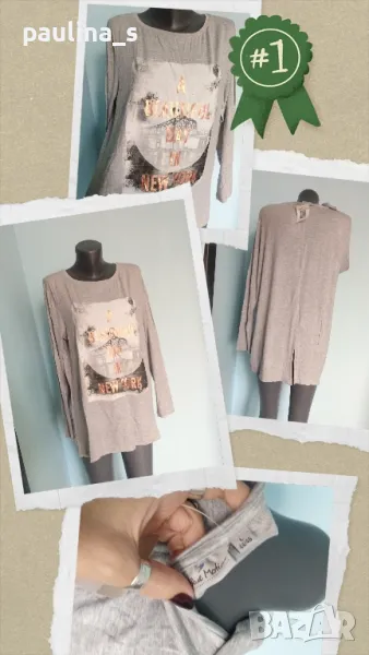 1️⃣. Колаж / XL / 4XL - "Blue motion" / Маркова еластична туника с дълъг ръкав и щампа. Цената е крайна 19,99лв / 10 евро. Моделът е обран и съобразен с размера. Материята е памук и вискоза, много фина и еластична, покрива няколко размера. Една бройка, нова с етикет.