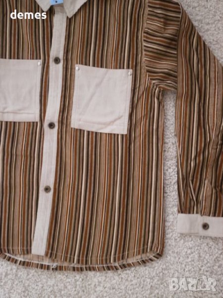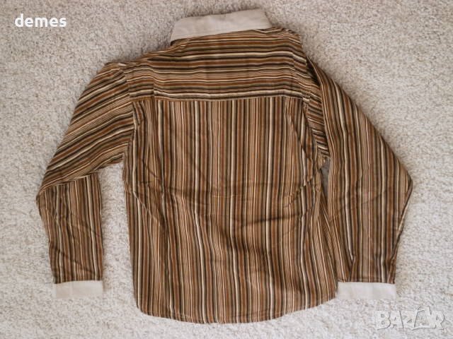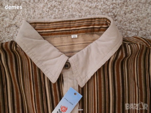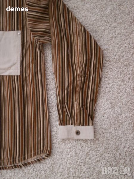 Ризата е в кафяв цвят, райе с едноцветни детайли.