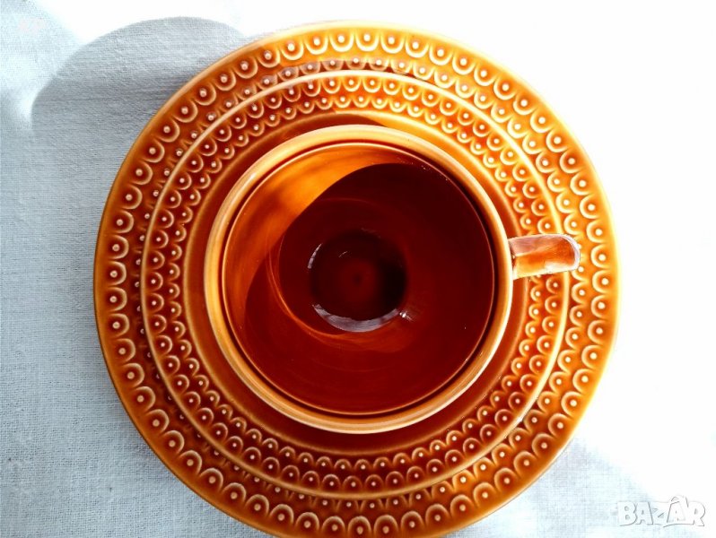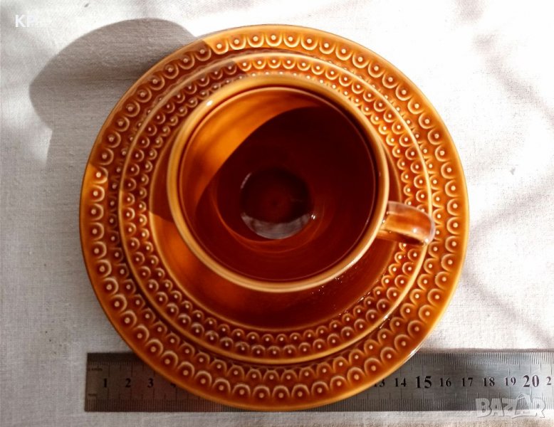 ✔️Включва голяма чиния с диаметър 16.5 см, малка чиния с диаметър 13 см и чаша за кафе с диаметър 7 см, височина 6 см
