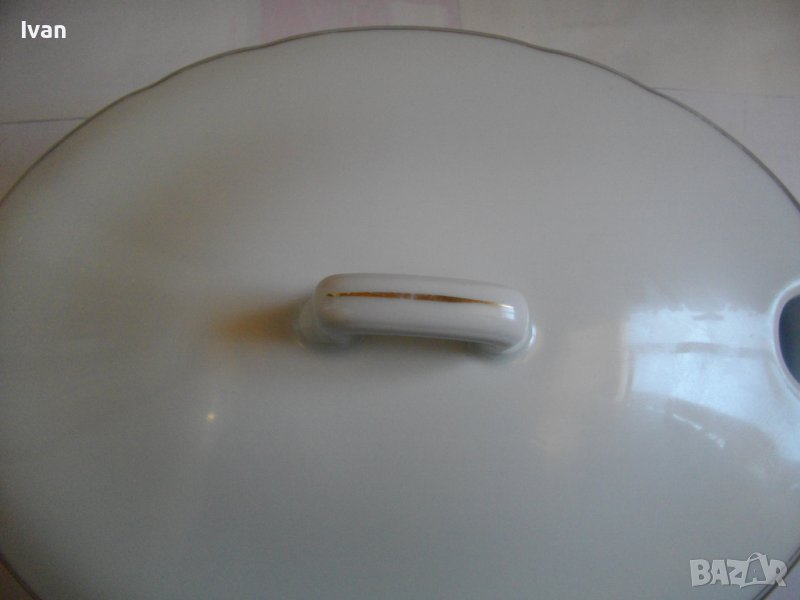 Височина на супника - 10 см, с капака - 13,5 см. Дължина - 34 см, ширина 24 см.Супника е без забележки, без чипове и без наранявания.