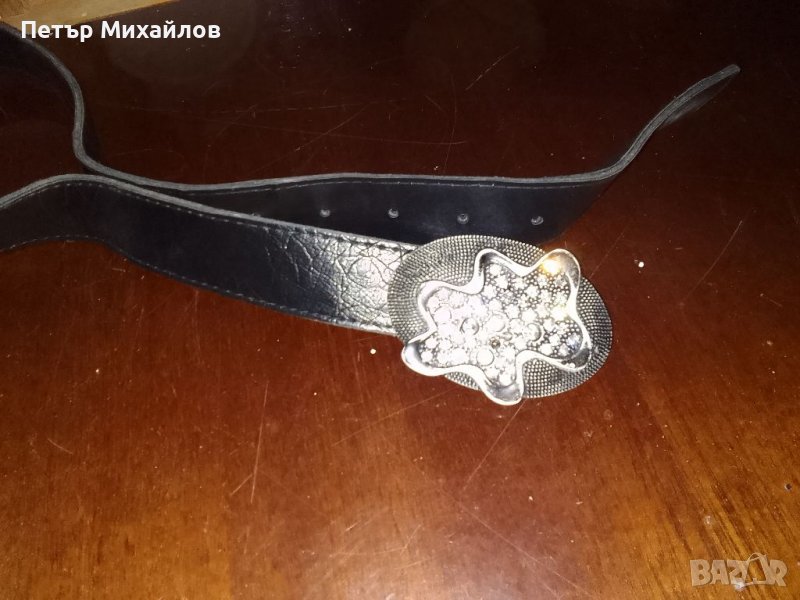 Кожен дамски колан. Доста шикозен. Орнаментирана тока със кристалчета. Почти подарък за 2лв :)