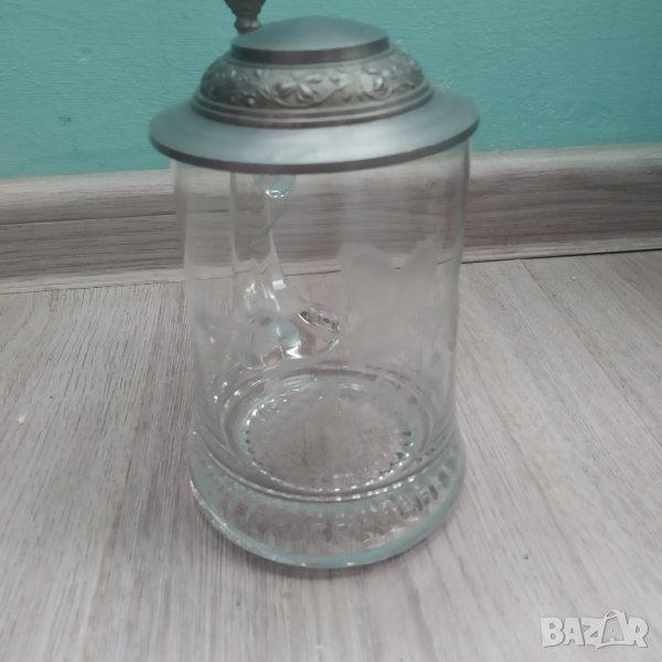 ретро халба за бира.стъкло и метал,гравирана.