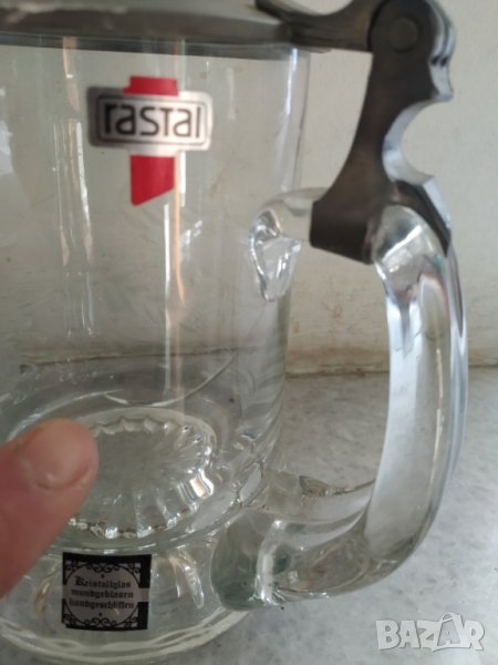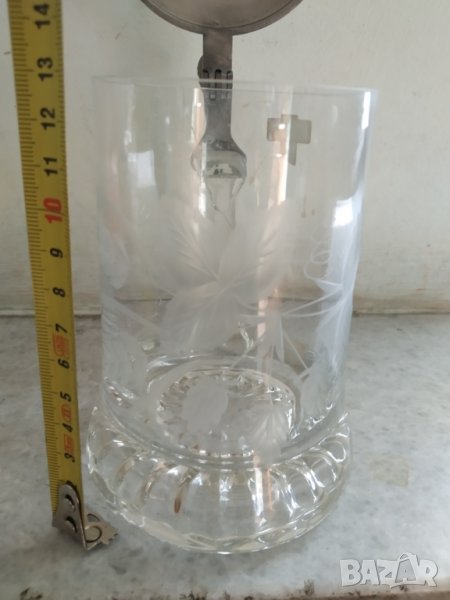ретро халба за бира.стъкло и метал,гравирана.забележка-пукнатина-не тече през нея