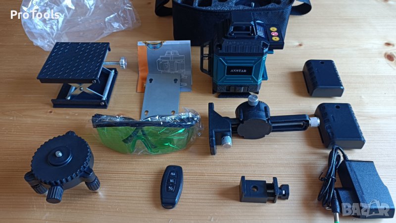 Нови налични лазерни нивелири модел 2023г. с 16 линии зелен лъч, LCD дисплей, Bluetooth , 12 степени за регулация дебелината на лъча, пълен комплект с ДВЕ батерии, ТРИ стойки.