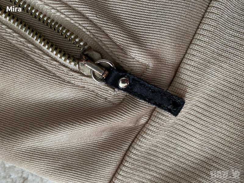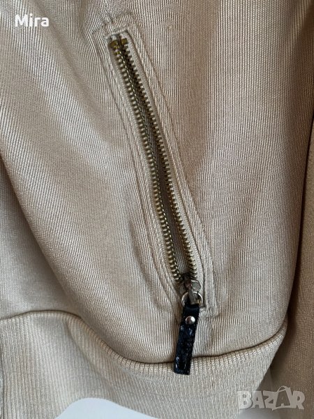 Дамски бежово златист суичер на Miss Sixty, без конкретни забележки освен кожената част на ципа, която е напукана вижда се на снимките.. Размер М, отговаря си, но става и за S