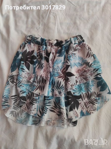 Пола с принт на листа. Шифонена с ластик в кръста. Става за размер ХС и С. Дължина 40 см.
