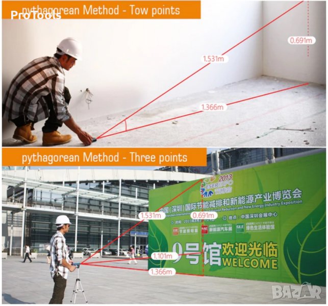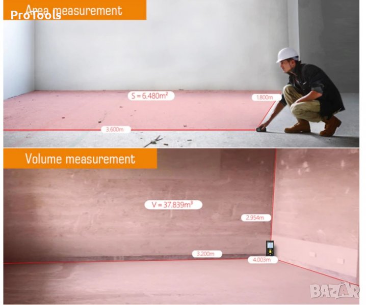 *6 функции за имерване - разстояние до 50 метра, продължително измерване, измерване на квадратура, измерване на обем, измерване по Питагор двуточково, измерване по Питагор триточково