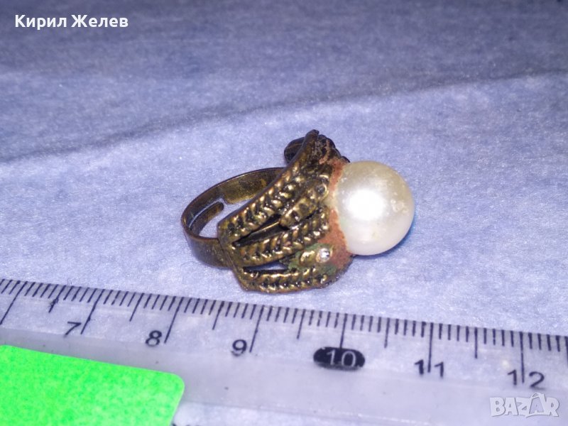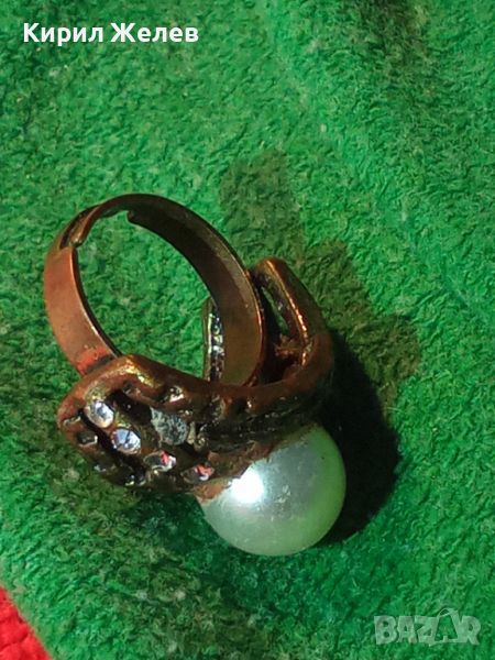 СТАР ЗЛАТИСТ ПЕРЛЕН РЕТРО ПРЪСТЕН от НЕРЪЖДАЕМА СТОМАНА РЕГУЛИРУЕМ 36610