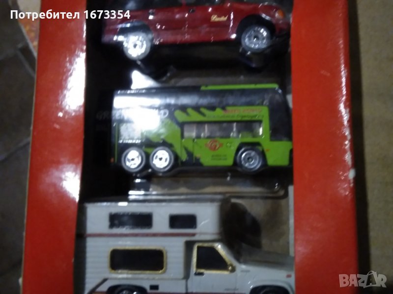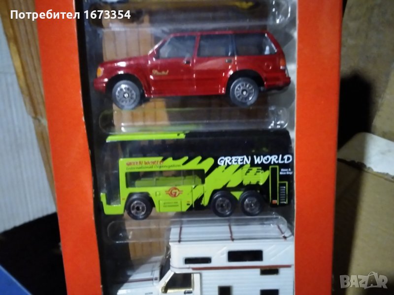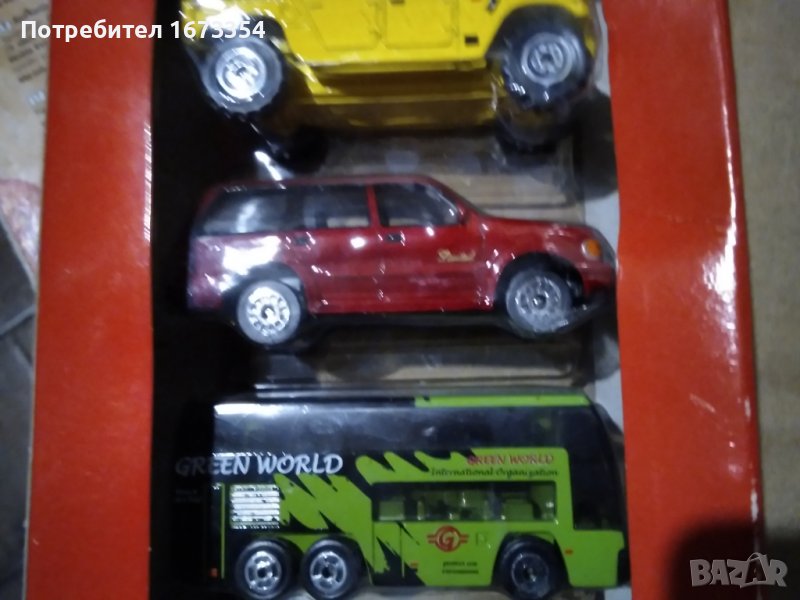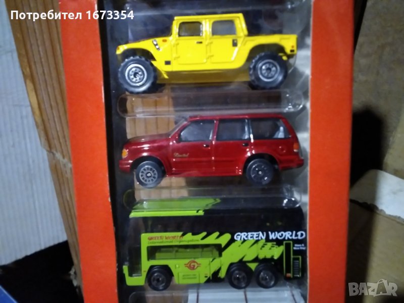 Пет броя коли нови в опаковката не разопаковани 1) Форд Галакси2)Хамър3)Форд Експлорър4)Автобус двуетажен (GREEN WORLD)