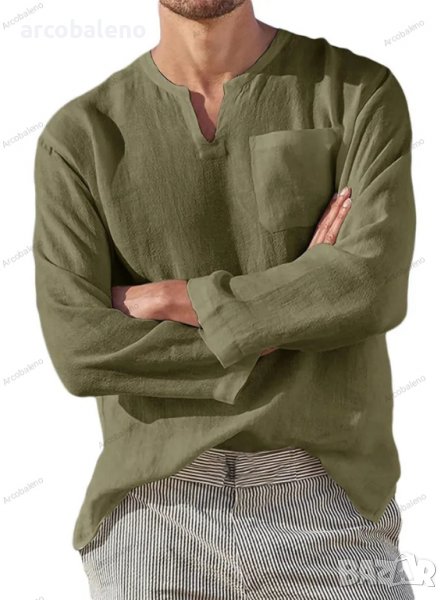 Мъжка ежедневна риза с V-образно деколте и дълги ръкави, 6цвята