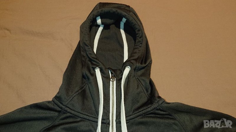 Без забележки. Размери: Между мищниците 49 см. Талия 42 см. Ръкав мерен от мищницата с ластика, в който влиза дланта 62 см. Перфектният среден слой с качулка за забързано приключение. Проектиран да доставя комфорт и топлина, както по време на, така и след активност - разполага с текстурирана вътрешна плетка, която осигурява отлични свойства на попиване, като същевременно улавя въздуха за повишена топлина. Тази универсална дамска дреха с качулка може да се похвали с два големи предни джоба, които предлагат достатъчно място за смартфон, ключ или други основни вещи. Изработен от лек и свиваем рециклиран полиестерен полар, той е идеален за опаковане в малки размери. Най-добрият универсален среден слой.