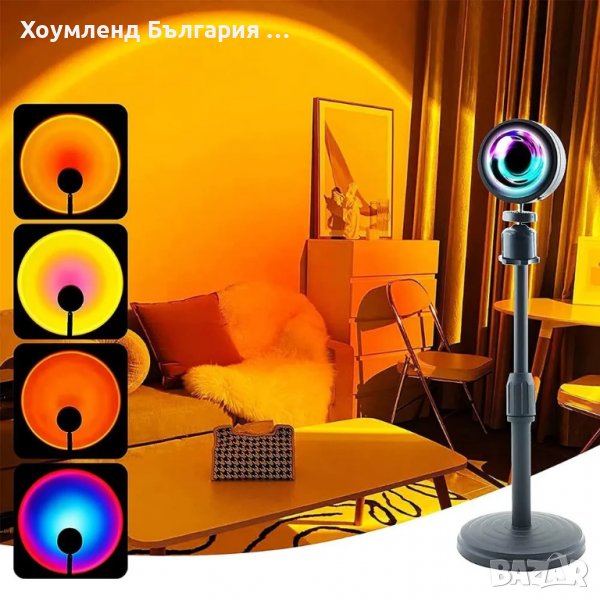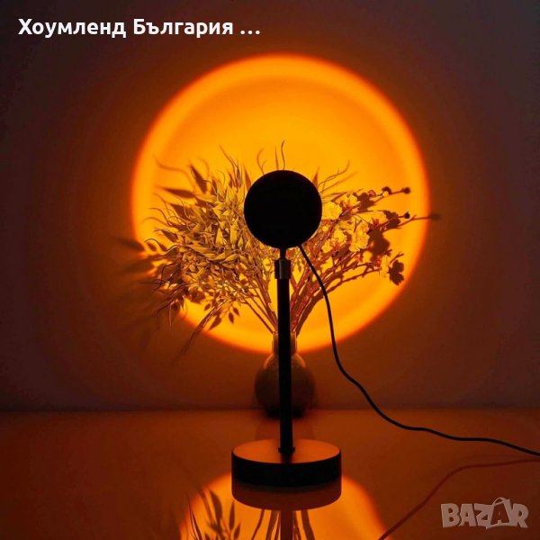 Оригинална лампа проектор с ефект на залез слънце, която излъчва много мека и релаксираща топла LED светлина, проектираща оранжева сфера, подобна на отражението на слънцето при залез слънце. Поради своята универсалност, тя е идеална за осветяване на множество пространства. Тя симулира топъл залез, създавайки специална и романтична атмосфера в спалнята, хола, офиса и т.н. Идеална и като нощна лампа за деца или като светлина за фотография. Тази многопозиционна лампа с ниска консумация има въртяща се приставка с регулируем наклон, за да проектира светлината от различни ъгли върху тавана, стената и т.н., по желание във всеки момент и според светлинния ефект, който се желае да се постигне. За да се намали или увеличи размера на проекцията, само трябва да се премести лампата (по-близо или по-далеч от тавана или стената). Тя работи чрез USB връзка и има един бутон за включване / изключване на USB кабела. В допълнение, тя не се нагрява или изгаря, така че е много удобна и безопасна. Основно, това е лампа за интериорите на дома, но благодарение на лекия си и преносим дизайн, тя също може лесно да се използва навсякъде, като се свърже към резервна батерия или друг USB източник, като например лаптоп.