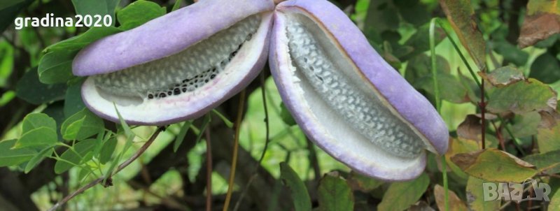 Плодовете са лилаво-виолетови, плоски и продълговати, с дъжина 5-10см.