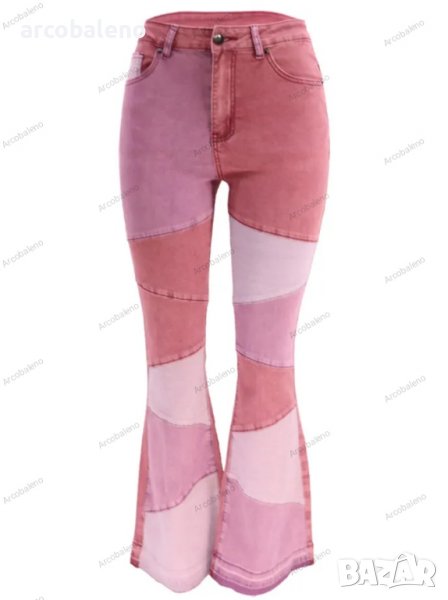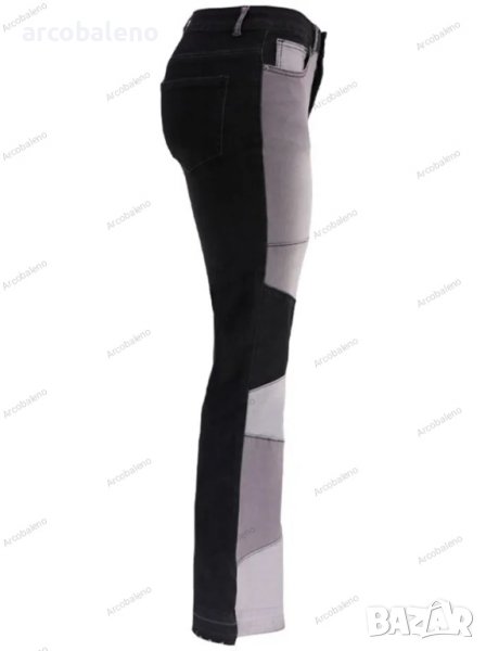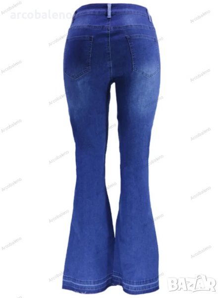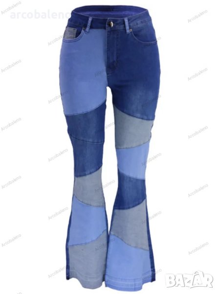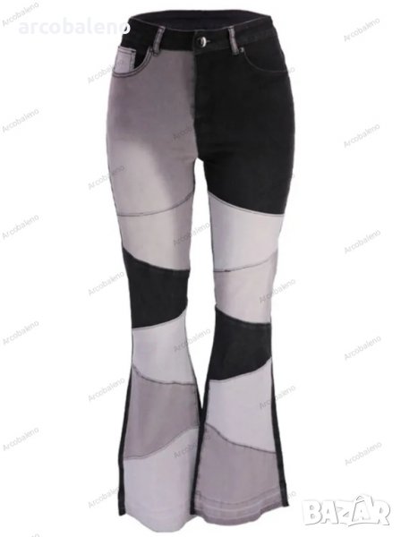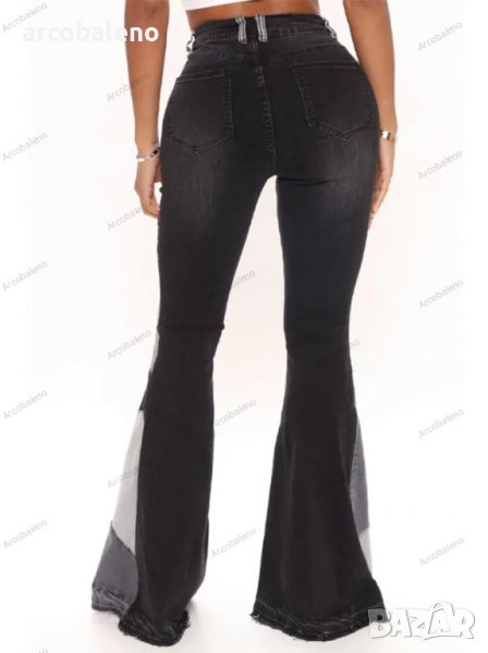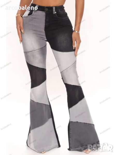 Дамски двуцветни улични изпрани клоширани дънки