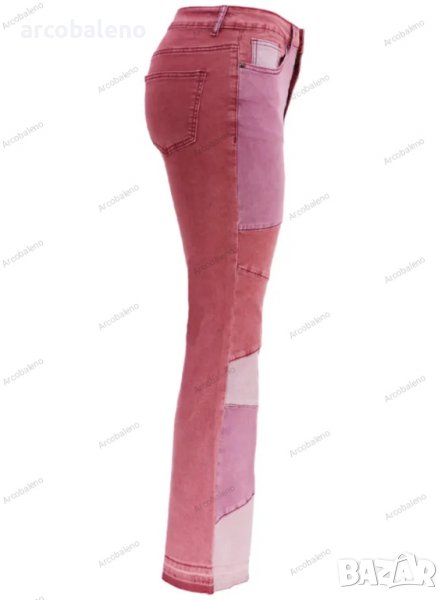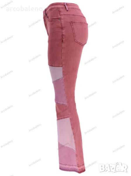 Дамски двуцветни улични изпрани клоширани дънки, 3цвята