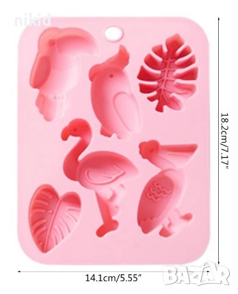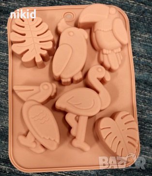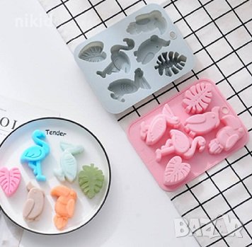 Фламинго папагал тропическо листо хаваи дълбоки силиконов молд форма калъп фондан шоколад гипс сапун → Обява 39746993