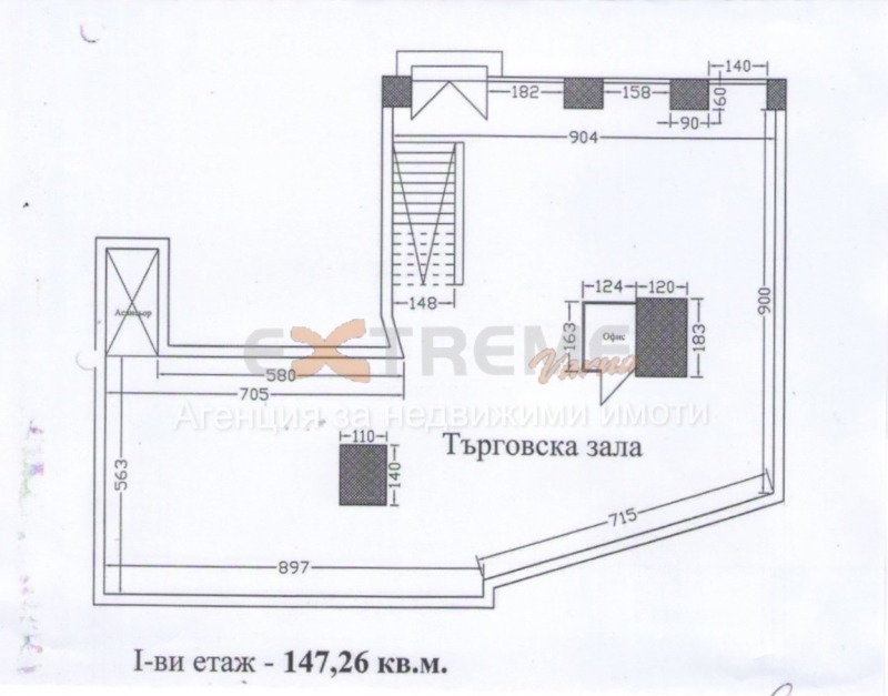 Първи етаж/Партер-147,26 кв.м. търговска зала.