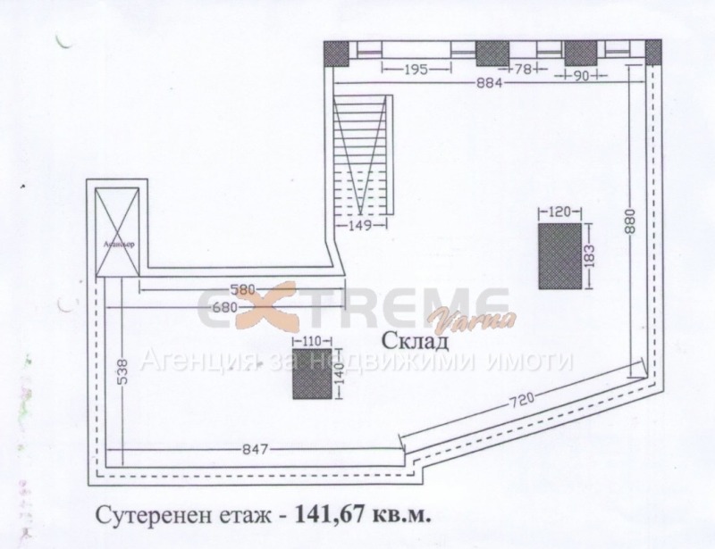 Сутеренен етаж-141,67 кв.м. склад/архив.