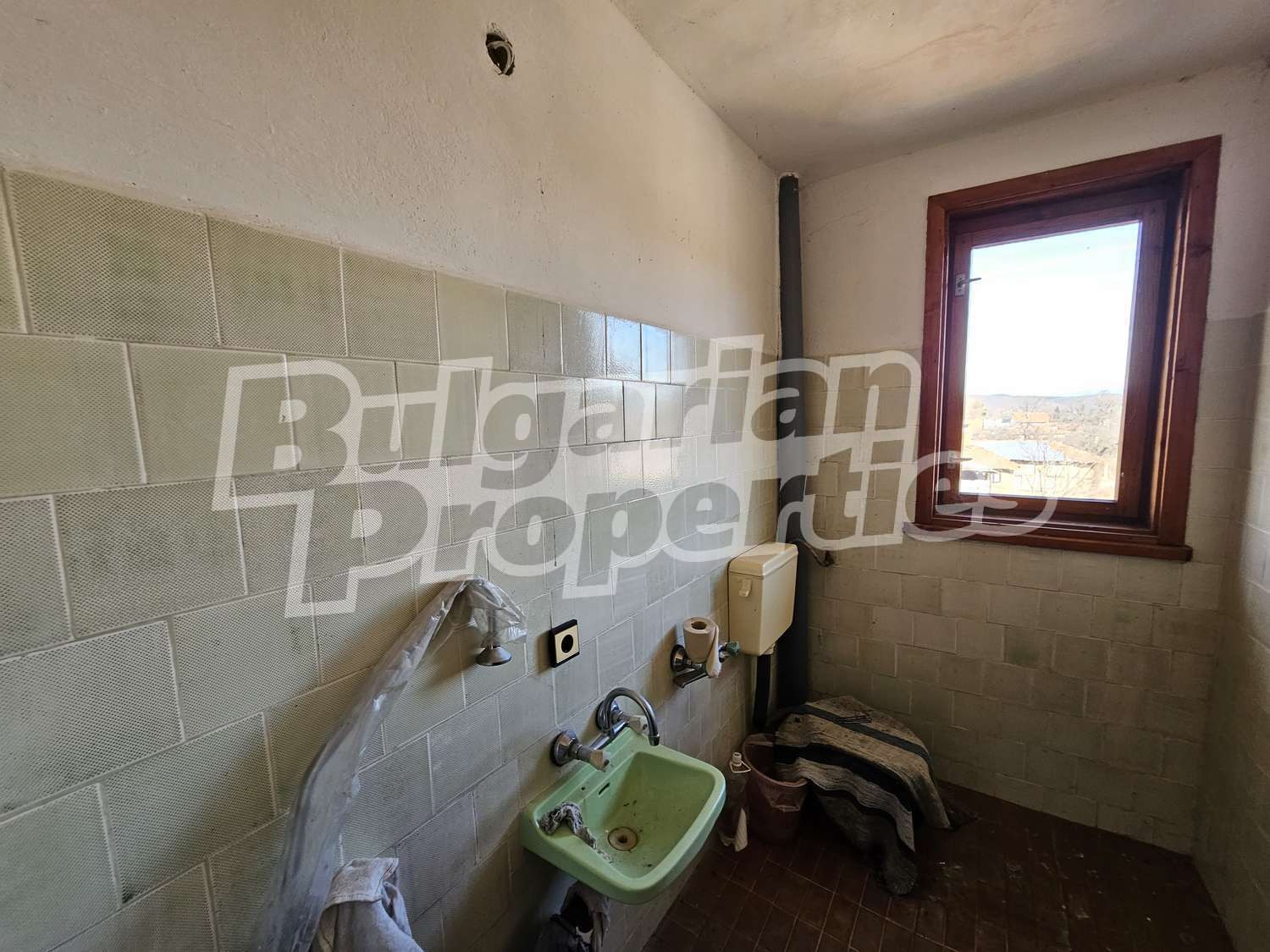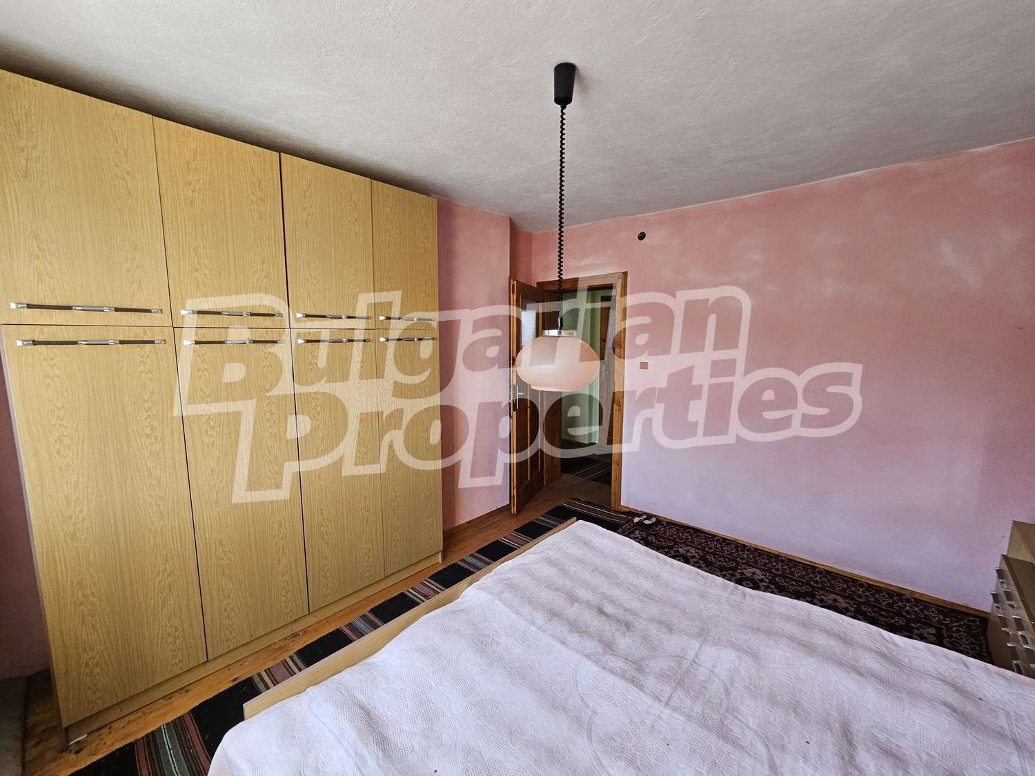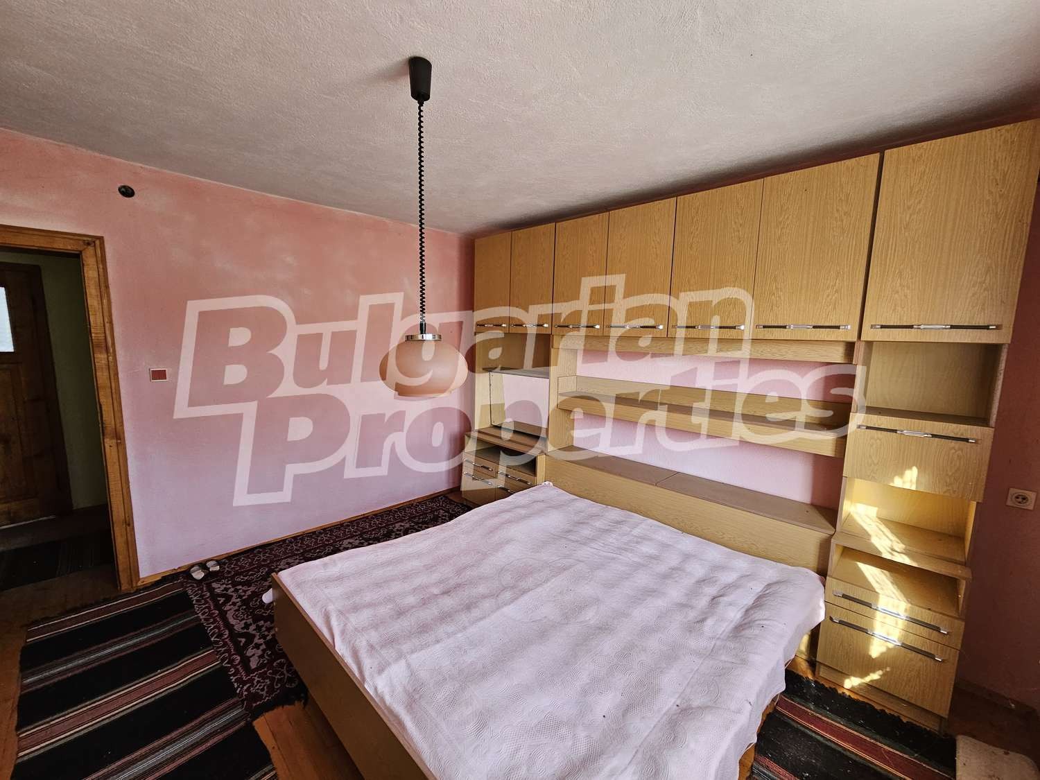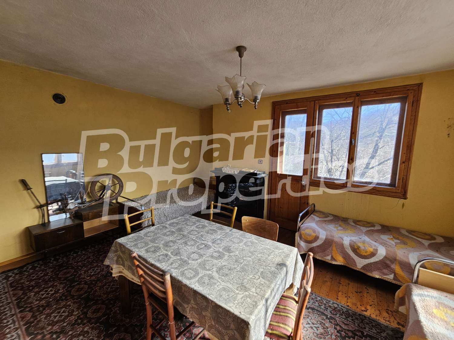 Настилки дюшеме, дограма двойна дървена, стени - мазилка.