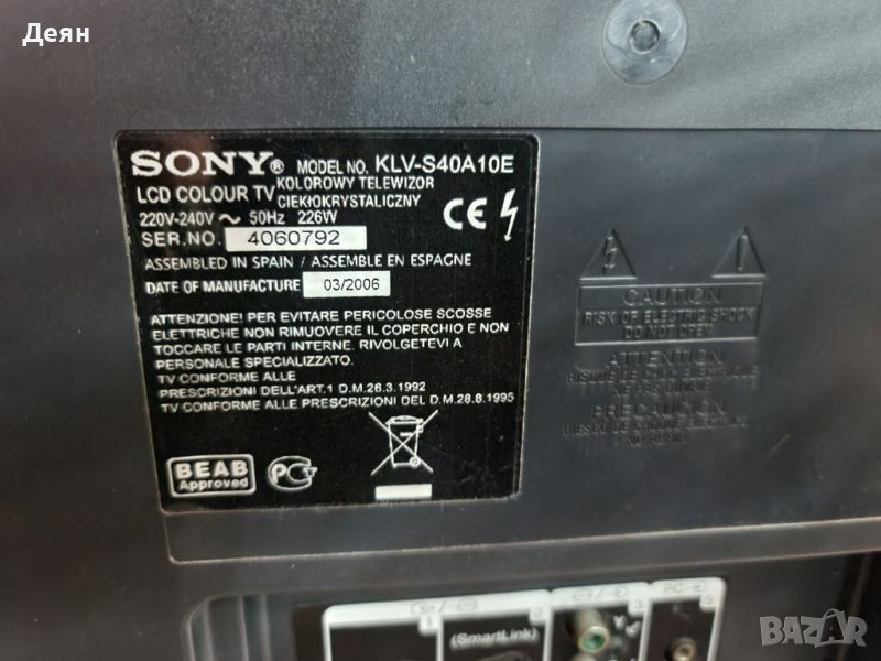 TV Sony klv-s40a10e, за части, снимка 1 - Телевизори - 39751508 TV Sony klv-s40a10e, за части, снимка 2 - Телевизори - 39751508 TV Sony klv-s40a10e, за части, снимка 3 - Телевизори - 39751508 TV Sony klv-s40a10e, за части, снимка 4 - Телевизори - 39751508 TV Sony klv-s40a10e, за части, снимка 5 - Телевизори - 39751508 TV Sony klv-s40a10e, за части, снимка 6 - Телевизори - 39751508 1/6