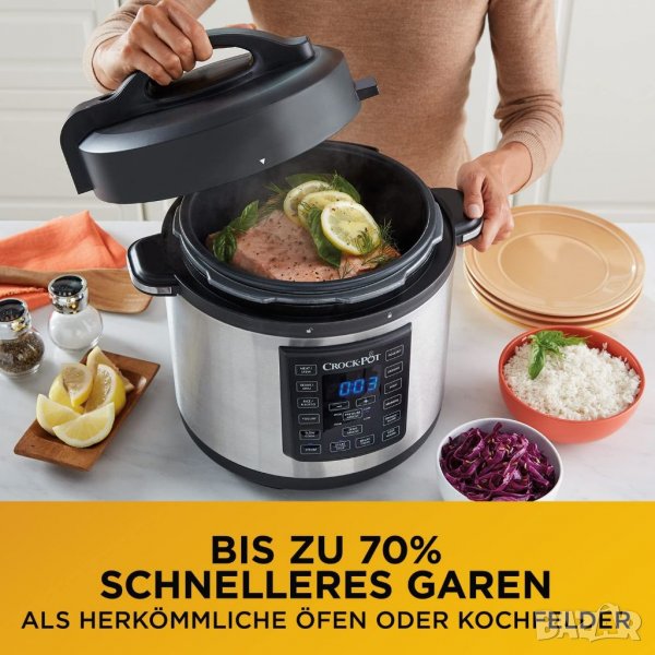 Имаме удоволствието да ви представим дигиталния Crock-Pot Express 5,6 л, преназначен за готвене под налягане. Иновативен, мултифункционален, уредът е с вграден дигитален контрол, 8 програми, 4 режима на готвене, таймер, а сребристият му цвят придава блясък в кухнята. С него може да готвите на пара, да задушавате и/или да използвате добре известния режим за “бавно готвене”