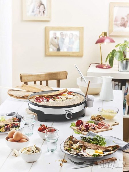 Уред за палачинки Lagrange - идеален за домашна употреба, със състояние използвано. Създайте вкусни палачинки у дома с този мощен уред (1500 W), който разполага с голяма плоча от лят алуминий с диаметър 35 cm.