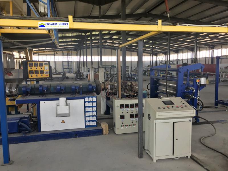 1. ПРОИЗВОДСТВЕННОЕ ХАЛЕ с площ от 2,2 дка с пълно оборудване за производство на изделия от полистерол: екструдер, оборудване за ситопечат и друго съпутстващо оборудване. Халето е новоизградено, метална конструкция с шлайфан бетонов под, с височина над 6 м ;