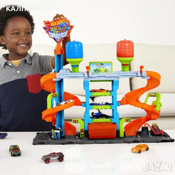 Досущ като истинска, автомивката Hot Wheelѕ® Mega Car Wash™ ще зарадва всеки малчуган. В горната част на автомивката са разположени 2 резервоара. Напълни ги с гореща и студена вода, а след това започни игра с количката Color Ѕhіfter™, включена в комплекта.