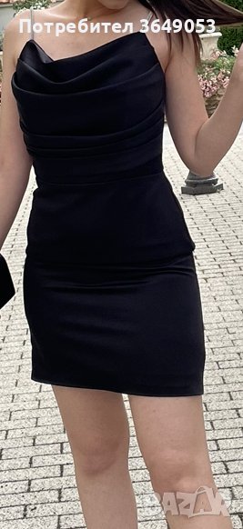 Сатенена елегантна къса рокля с камъни на презрамките. Обличана само за повод, много запазена. Размер 36 - 50-55кг, 160-170см