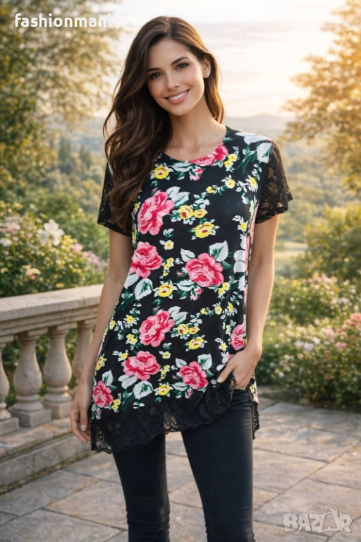ЕЛЕГАНТНА РАЗКРОЕНА ТУНИКА С ДАНТЕЛА - код 784