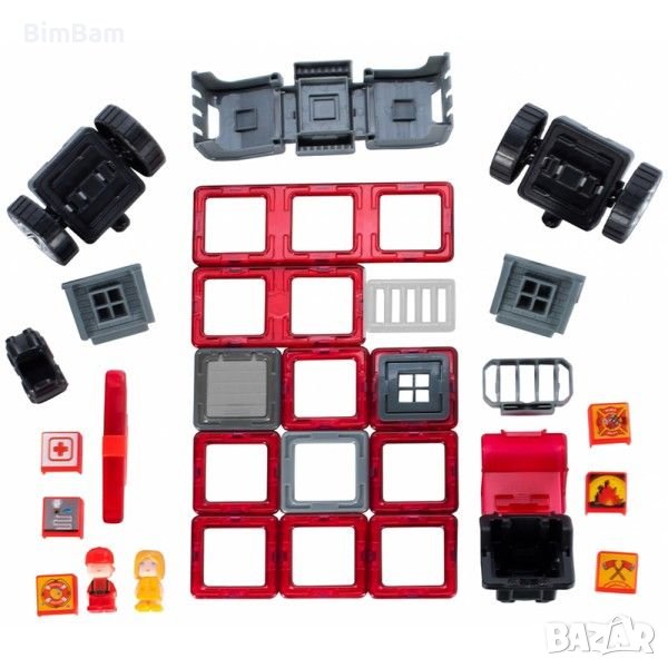 Забавен магнитен конструктор MAGIC MAGNETIC RESCUE - Пожарна кола - 30in1 / 30 части