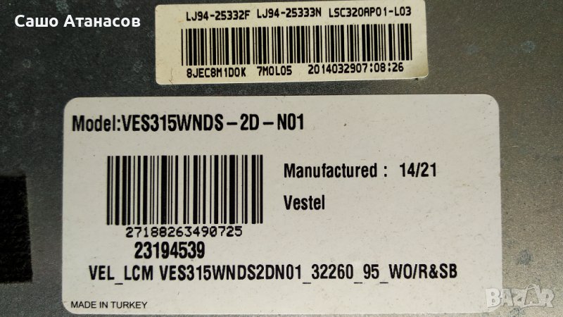 NEO LED 32272 DL със счупена матрица ,17IPS71 ,17MB82S ,VES315WNDS-2D-N01 ,LSC320AP01-L03 ,17LD160