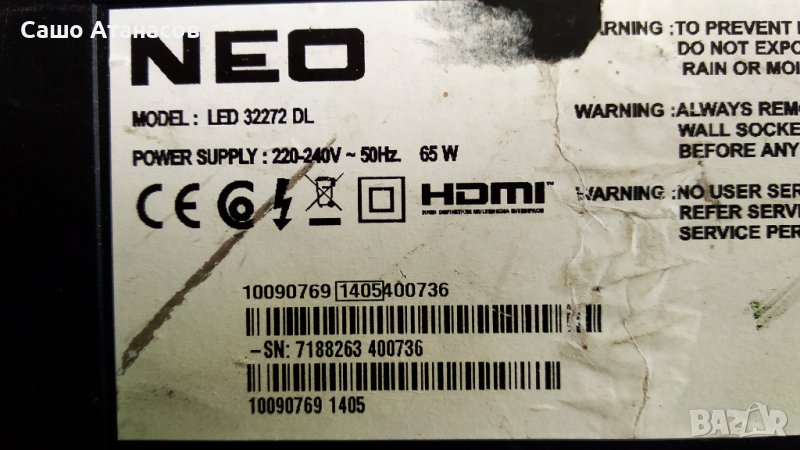 NEO LED 32272 DL със счупена матрица ,17IPS71 ,17MB82S ,VES315WNDS-2D-N01 ,LSC320AP01-L03 ,17LD160 → Обява 39760352