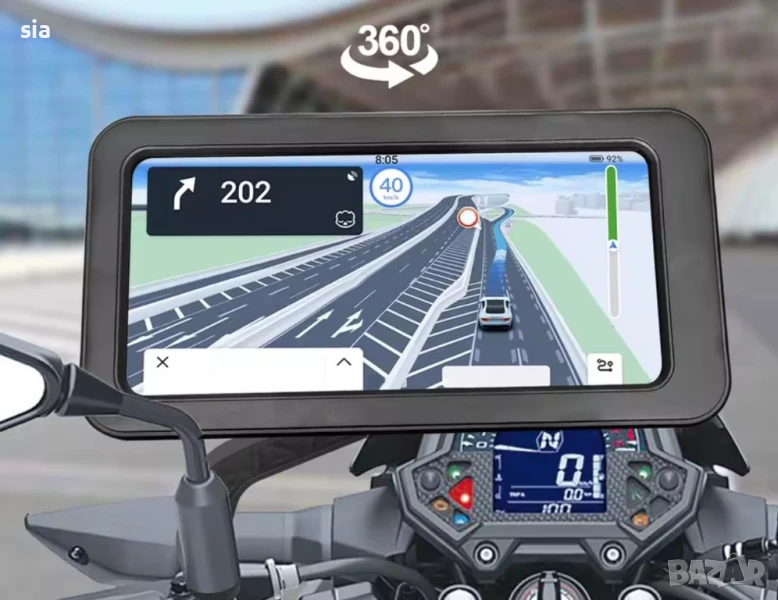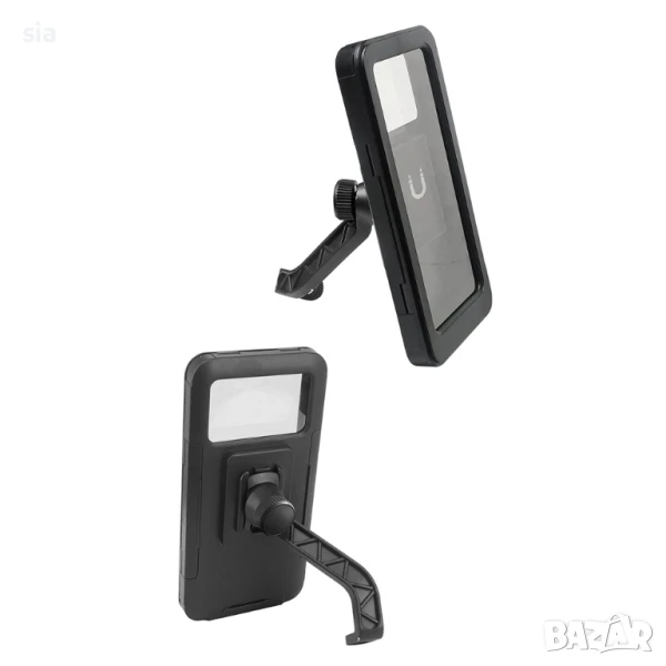 Водоустойчив държач за телефон се прикрепя към баланса на мотоциклет или велосипед и е много удобен по време на каране. Можете да го използвате, за да правите снимки, да провеждате разговори, да използвате навигация и т.н. Структурата, която здраво захваща телефона Ви, е удароустойчива и предпазва телефона Ви от надраскване. Върти се на цели 360° и можете да го прикрепите на ръка без инструменти.