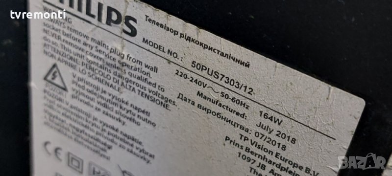 MAIN 715G8579-M0D-B01-005T - PHILIPS 50PUS7303/12 DISPLAY TPT500U1-QVN03.U REV.S7B0M Борда е гарантирано работещ Демонтиран от телевизор PHILIPS модел 50PUS7303/12 със счупен дисплей TPT500U1-QVN03.U REV.S7B0M тествана от нашия техник тествана от нашия техник