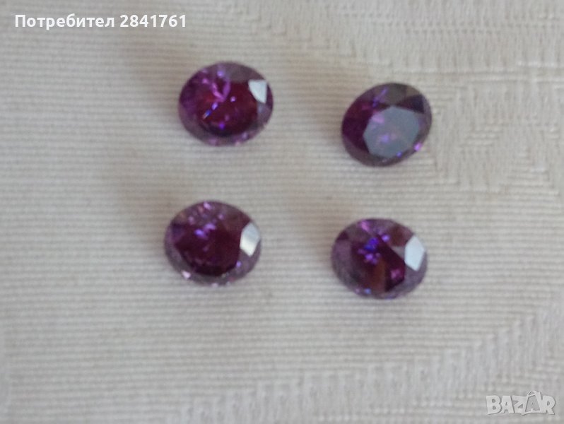 Лот от четири броя фасетирани кръгли виолетови камъни.