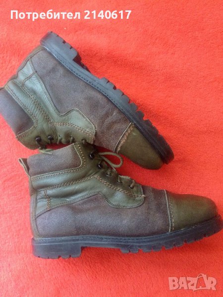 Туристически боти,естествена кожа,цвят каки+ кафяво,закопчаване-връзки,дължина на стелката вътре-25.3см=N:39;подплата-отоплени