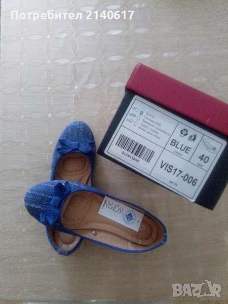 Текстилът е лен в дънков цвят с малко сребрист блясък; омекотени отвътре,много леки;Дължина на стелката вътре-25,5см=N:40