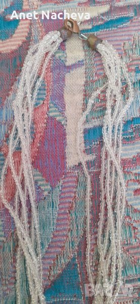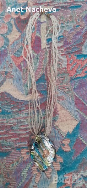 Дължина - 49 см, огърлицата е с шест броя нанизи от мини топчета седефени, а фигурата е с форма на сърце, разноцветна отпред и черна отзад, тип стъкълце