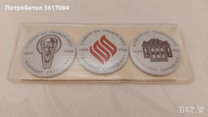 Сет от три юбилейни значки по повод 100 годишнината на СУ "Климент Охридски" → Обява 39770367