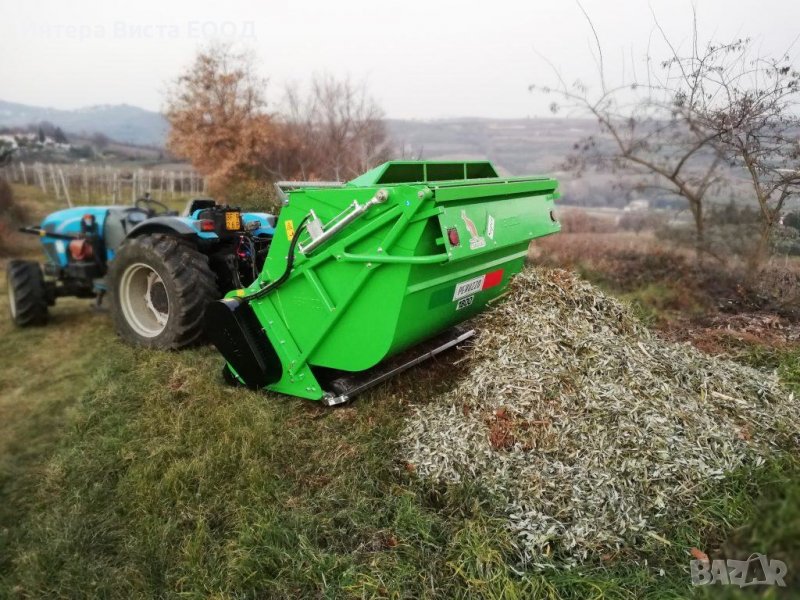 Раздробител за резитбени пръчки и тревна маса с контейнер и хидравлично изсипване 1600 мм работна ши
