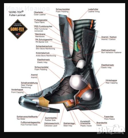 Водоустойчив и дишащ благодарение на Gore-Tex, цялата кожена част е подходящо подплатена, но с текстилната смес от полиамид и полиестер е удобна като меча кожа отвътре. Благодарение на двата странични ципа е по-лесно да се пъхнете в GTX, отколкото в панталоните за джогинг, а с кройката си всъщност прави тънък крак на почти всички видове мотоциклети. Накратко: в него се чувствате добре защитени и комфортно.