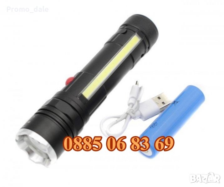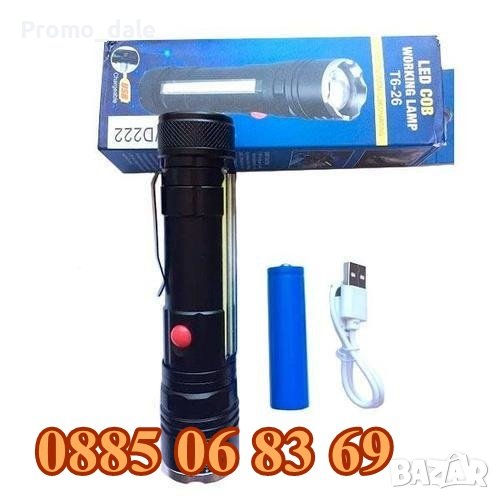 Мощен LED фенер и работна лампа с магнит и USB зареждане, идеален за всякакви дейности на открито или закрито. Страничен COB диод, който позволява да се използва като работна лампа. Къмпинг фенер.