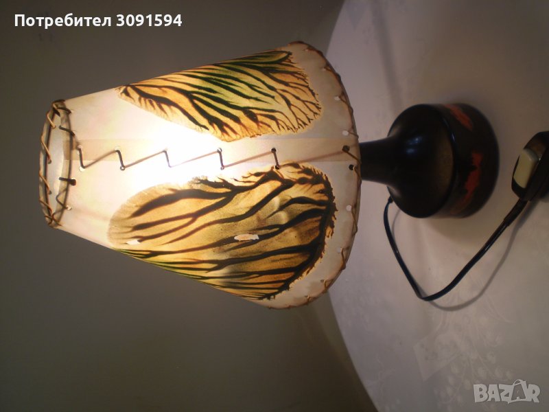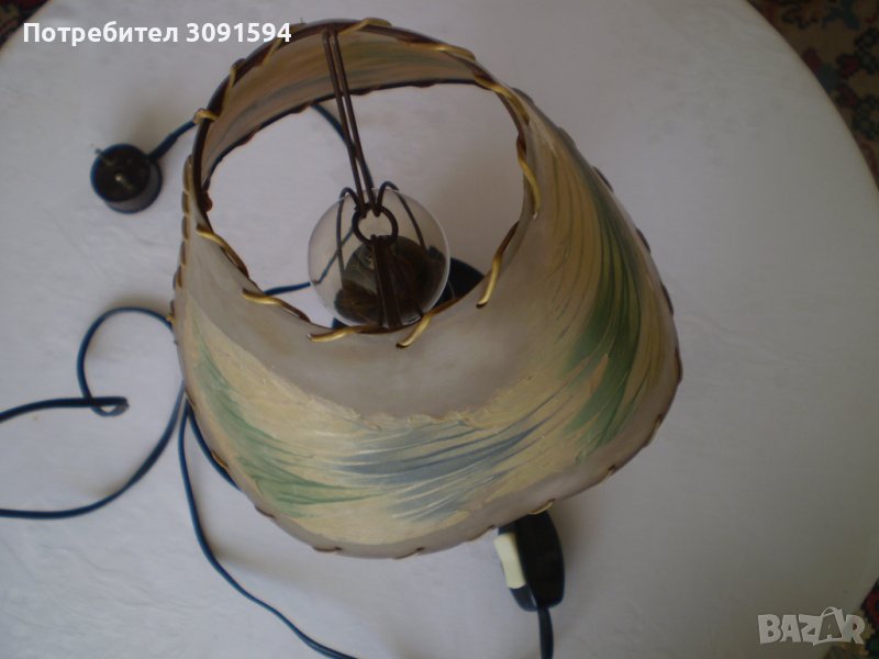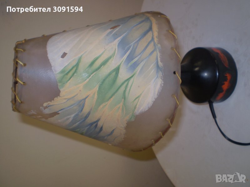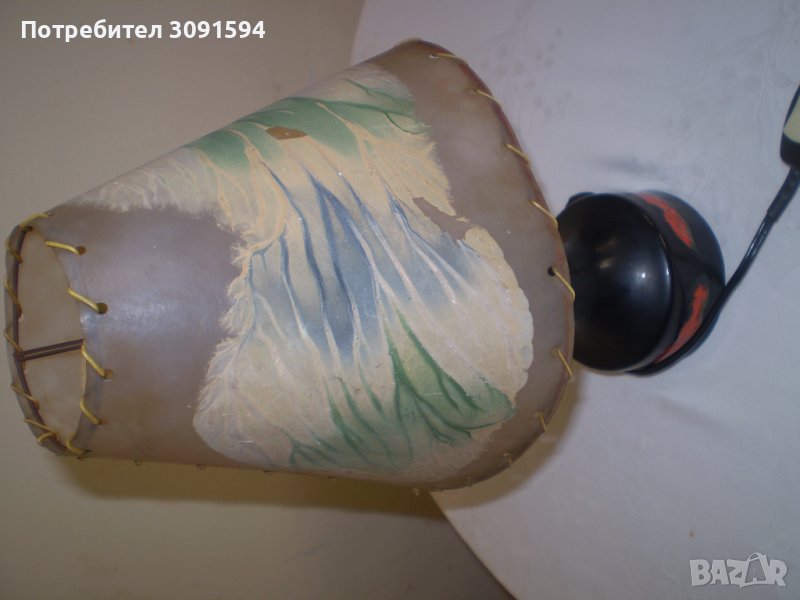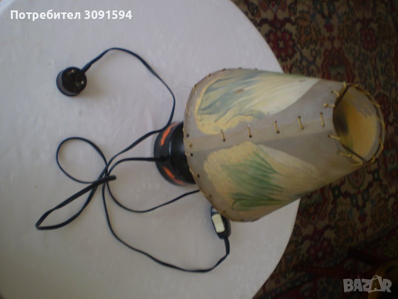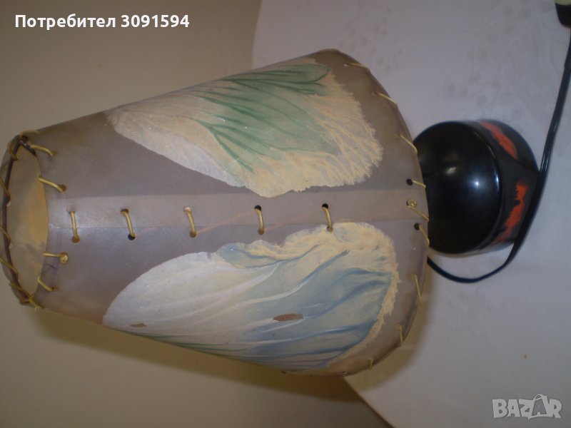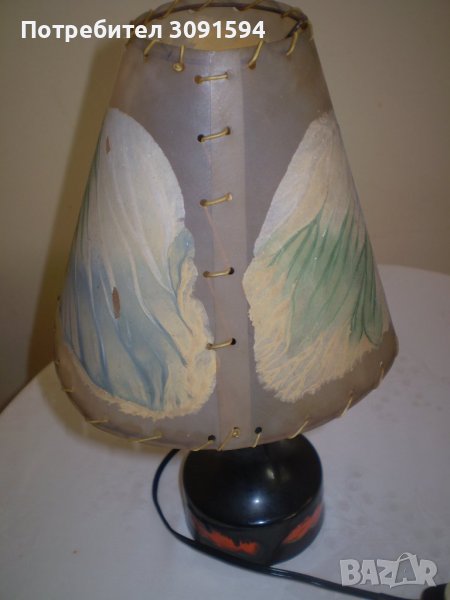 Стара керамична лампа със рисуван абажур ЛАМПАТА Е НА ТОК → Обява 39776863
